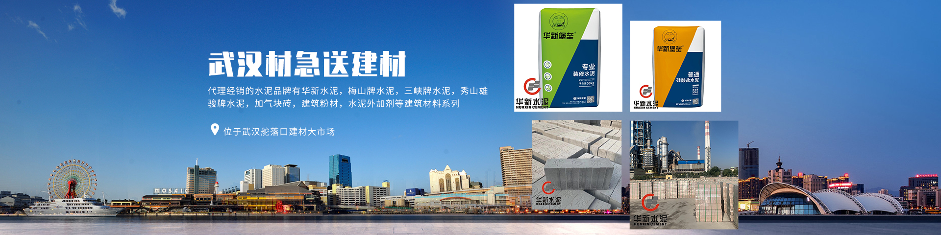武漢材急送建材有限公司位于武漢舵落口建材大市場,是一家專業從事水泥批發,水泥外加劑,建筑粉材,加氣塊磚等建筑材料經銷代理商,代理經銷的水泥品牌有華新水泥,梅山牌水泥,三峽牌水泥,秀山雄駿牌水泥,加氣塊磚,建筑粉材,水泥外加劑等建筑材料系列。 武漢材急送建材有限公司成立于2016年,在武漢舵落口建材大市場擁有200平方米門面用于產品展示經營,1000多平方米倉庫隨時庫存各品牌水泥300多噸。